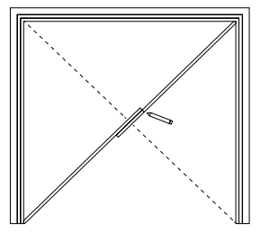Fäll upp handtagsregeln och haka i den övre stången. Dörrbladet skall kunna öppnas utan att stången tar i överstycket. Markera och skruva fast stängernas fästen med medföljande skruv.