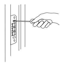 Tips! Gångjärnen kan även ställas i sidled. Lossa gångjärnsskruvarna på karmdelen lite grann och justera i sidled genom att skruva ut torxskruvarna. Dra åt gångjärnsskruvarna efter avslutad justering