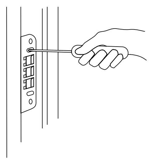 Tips! Gångjärnen kan även ställas i sidled. Lossa gångjärnsskruvarna på karmdelen lite grann och justera i sidled genom att skruva ut torxskruvarna. Dra åt gångjärnsskruvarna efter avslutad justering