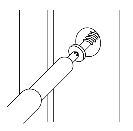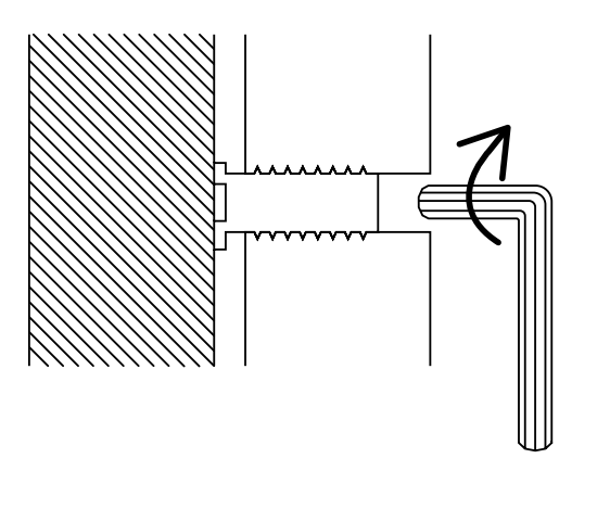 6. Skruva ut karmhylsorna mot vägghålet sidor. Samtliga karmhylsor ska kunna ligga an mot väggen så att man uppnår ett stumt montage. (I de fall karmen inte har förmonterade hylsor ska dessa skruvas in från karmens baksida m.h.a insexnyckel eller montageverktyg från tillverkaren).