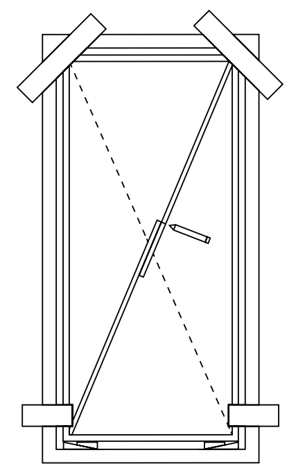 8. Kryssmät karmen för att säkerställa att karmen står rätt. Detta är uppnått när båda diagonalmåtten är lika.