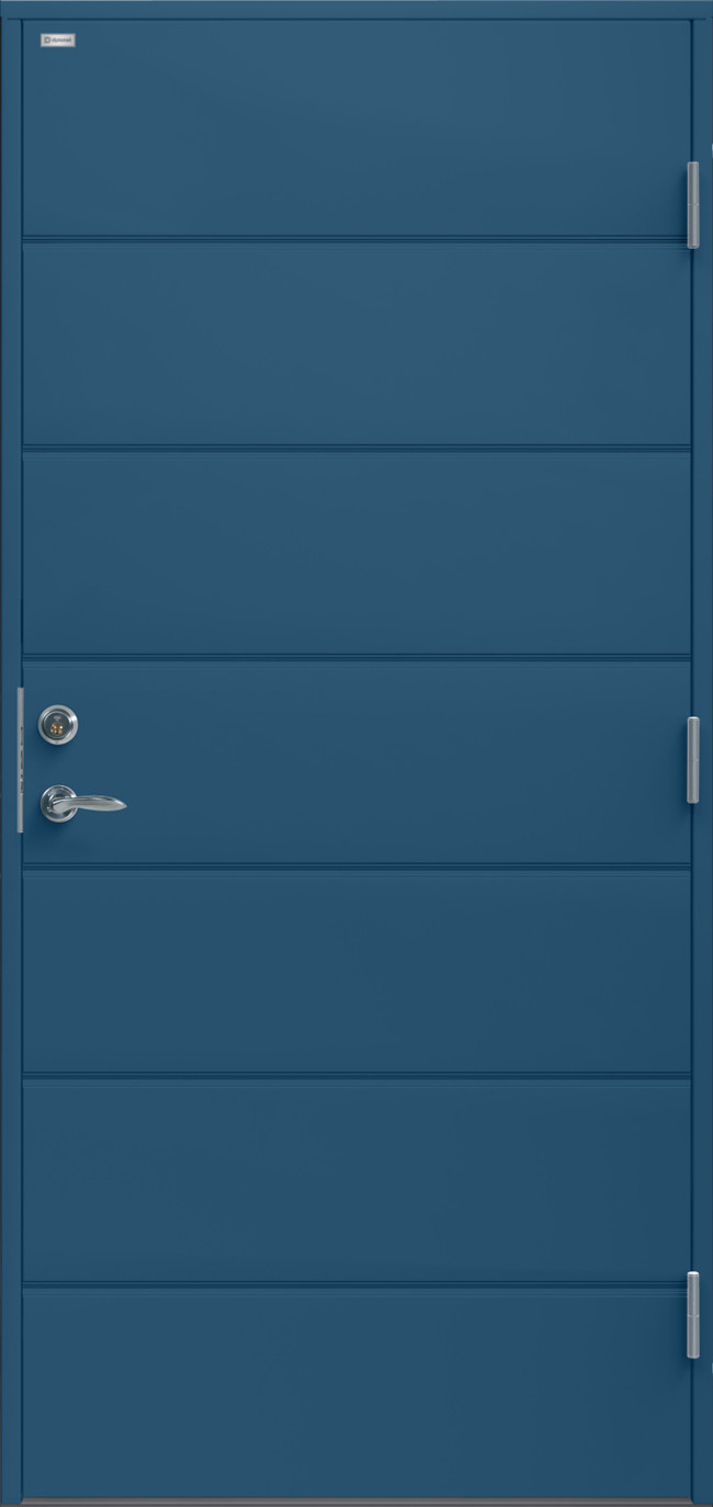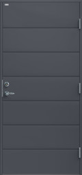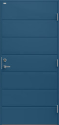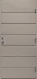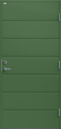 Dekorspårad ytterdörr i traditionell stil med liggande dekor.