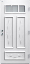 Britta glas är en ytterdörr i klassisk stil, dekorerad med elegant listverk, dörrspeglar och tre liggande klarglas upptill som släpper in ett mjukt ljus. Denna ytterdörr passar dig som är ute efter att ge huset en välkomnande entré med en harmonisk och inbjudande karaktär. I sitt standardutförande levereras Britta glas med klarglas, standardbeslag och i vit standardkulör. Dörren kan anpassas efter dina önskemål med tillval som valfri baskulör, specialkulör (på in- och utsida), karaktäristiska beslag och andra glastyper. Hitta din dörrkänsla med Britta glas.