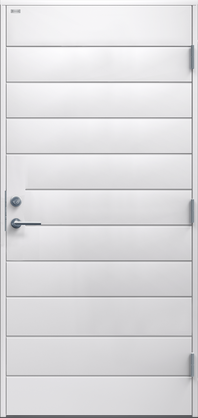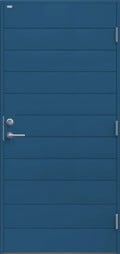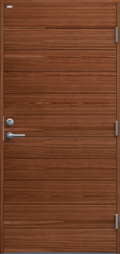 Dekorspårad ytterdörr i traditionell stil med liggande dekor.