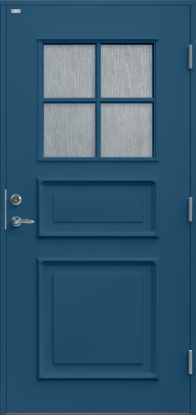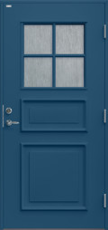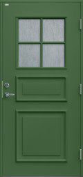 Klassisk ytterdörr med dörrspeglar markerade med lister. Cotswoldsglas beprytt med dekorspröjs. Välj mellan valfri kulör eller konstteak.