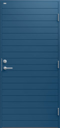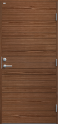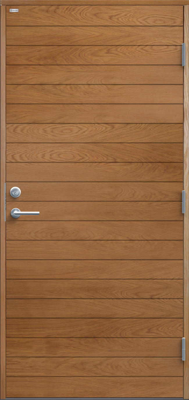 Ytterdörr i modern stil med spårfräst dekor i form av liggande panel. Finns i ek, konstteak eller kulör.