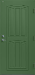 Ytterdörr i traditionell stil med spårfräst dekor.