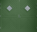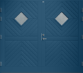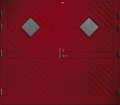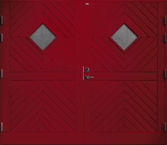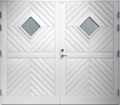 Garagedörr i traditionell stil med diagonal panel i form av spårfräst dekor samt två cotswoldglas. Välj mellan valfri kulör eller furu.