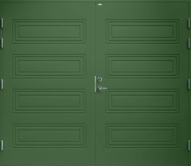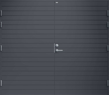 Garagedörr med helt slät yta utan dekor. Finns i valfri kulör.