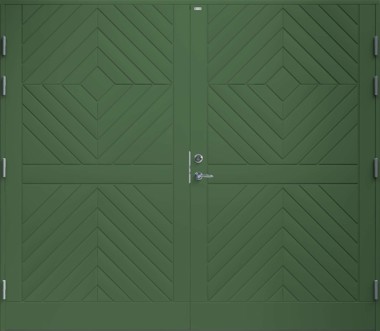 Dekorspårad garagedörr i traditionell stil.
